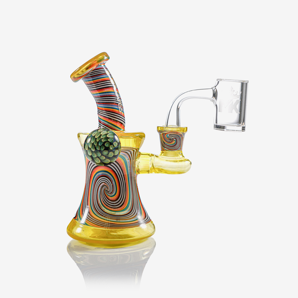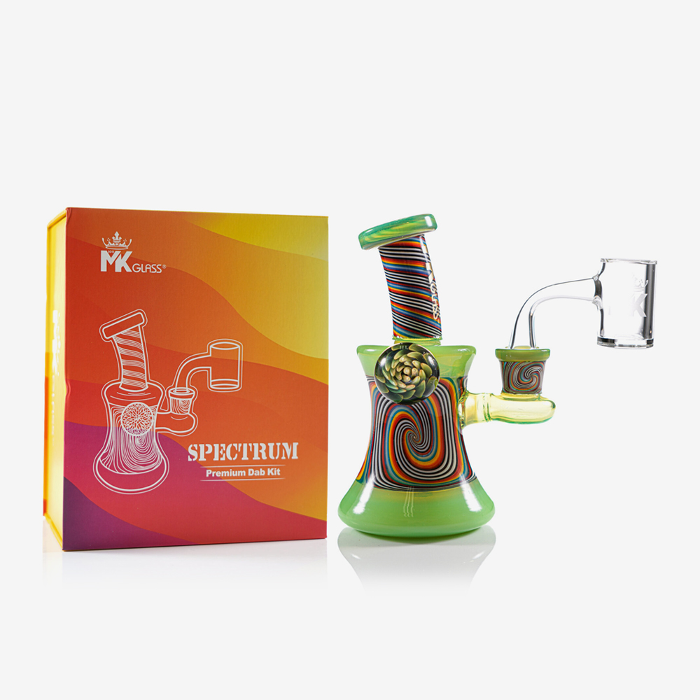 ¡Empieza con el kit de dab premium MK100 SPECTRUM! Una caracterÃstica clave de este hermoso producto es que está fabricado 100% con colores NorthStar American Premium y viene con un brazalete premium soldado. Este tipo de calidad y trabajo es un elemento básico original de MK100 Glass. Con un llamativo colgante de flores en el lateral, este kit será la mejor inversión que puedas hacer. La caja que lo contiene todo es simplemente una obra maestra. No solo puedes exhibir tu rig, sino que también puedes exhibir la caja ¡MK100 Glass se esfuerza por lograr la calidad en cada pieza y eso es exactamente lo que ofrece este kit para dabs!